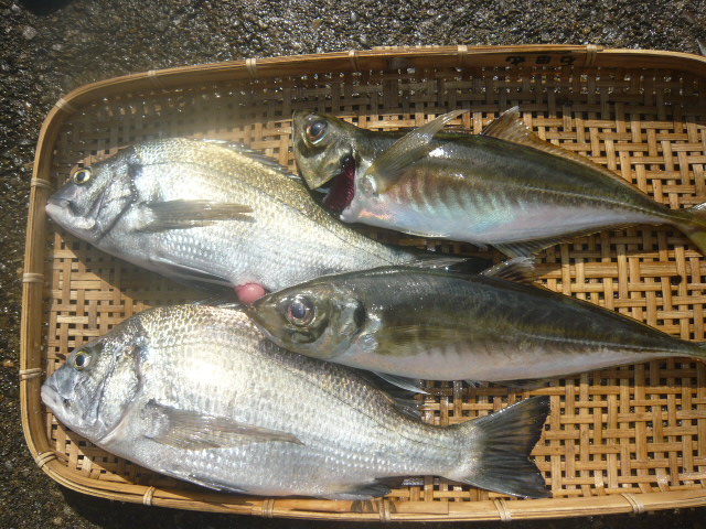 | 名称 | マアジ、黒鯛 ☆進藤氏、安田さん | サイズ | 20~45㎝、40、45㎝ | 重量 | |