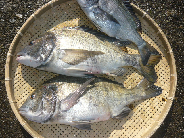 | 名称 | 黒鯛 ☆菊池氏 | サイズ | 52,50,39㎝ | 重量 | 2㎏、1.9㎏ |