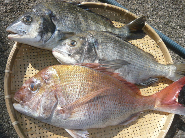 | 名称 | 真鯛、黒鯛 ☆高山ハルキ君 | サイズ | 61㎝、50㎝、49㎝ | 重量 | 2.6㎏、2.1㎏、1.8㎏ |